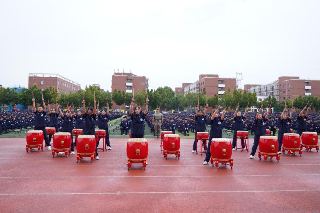 军训结业仪式在激昂的常山战鼓表演中拉开帷幕。