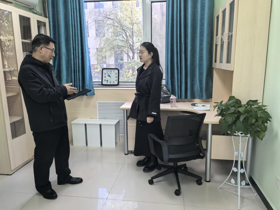 调研中,冯军细致察看了心理咨询中心的个体咨询室、朋辈沙盘室、心理档案室等功能室,了解各功能室的设施配置、使用流程及日常管理维护情况,与中心专职心理教师进行了亲切交流,仔细询问了当前学生心理咨询工作开展的具体流程以及工作中面临的困难与挑战,并对心理老师的辛勤付出给予了充分肯定。