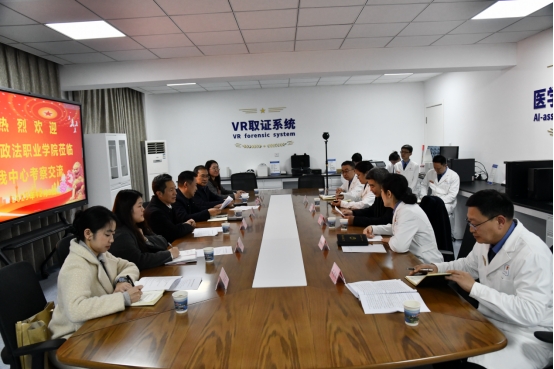 学校一行实地参观了省院司法鉴定中心文件检验、心理测试、公益诉讼快速检测、痕迹检验、声像资料、电子数据及AI综合分析等实验室。