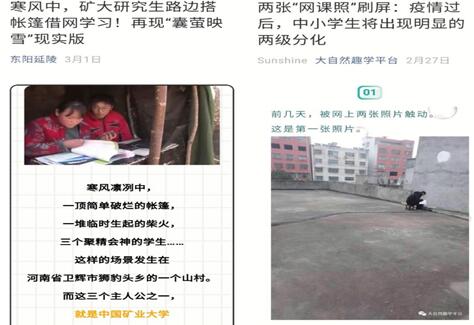 另外,我还将网上一些励志的文章推送给学生,比如《寒风中,矿大研究生路边搭帐篷借网学习!再现“囊萤映雪”现实版》《两张“网课照”刷屏:疫情过后,中小学生将出现明显的两级分化》,以此激励学生自律,“幸运的前提,是你的努力,你的自律!”