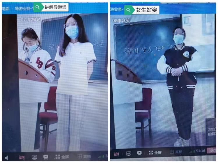 每次课通过QQ群屏幕分享方式,抽查三到四位同学的导游词讲解和主题演讲。按照导游考试面试要求,每位同学讲解6-8分钟,之后进行相关内容的提问,并扩大到班内所有同学,防止偷懒,同时每次课要求同学们进行旅游服务接待礼仪的展示,以此促进课下训练。此项课堂互动环节有助于同学们理解爱岗敬业、服务至诚的理念。