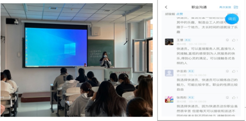 比如针对两会热点“3月5日,一位全国人大代表的建议冲上热搜第一。该建议鼓励年轻人当产业工人,少送快递当骑手,网友们对此纷纷发表看法,话题阅读量超过4亿”,教师在学习通上发出讨论,学生在学习通讨论后,整理思路,挑选两个学生进行3分钟观点阐述。石佳鑫同学认为,如果是她选择职业的话,她愿意选择制造业工人,因为希望制作的东西可以给别人带来便利。李梓依同学说,她选择快递员,因为可以了解快递的运送,接触各种各样的人磨练自己的脾气。通过“说”这个热点,既锻炼了学生的沟通表达能力,同时培育学生的工匠精神。