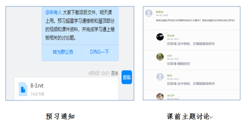 课前在钉钉群发布预习任务,让学生预习超星学习通里的课程资源,包括课件、讲解视频,并完成主题讨论。