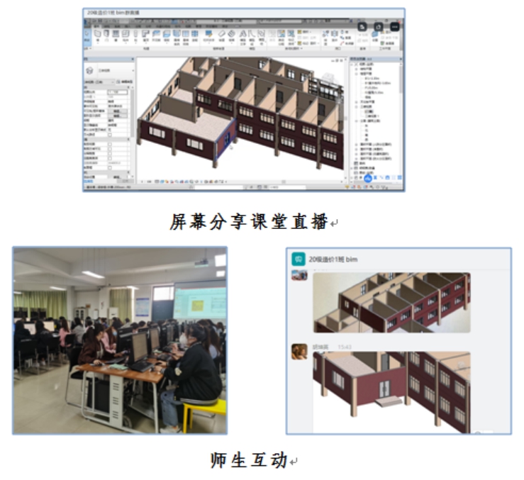对于《BIM技术应用》这门课程来说,依赖于网络和计算机,在线下教学中,本课程需要在BIM实训室利用Revit软件进行建模,主要模式为教师操作演示—学生观看—动手实操—教师指导四个步骤,线上教学中,利用钉钉开展网上直播教学,结合超星学习通软件来达到“教-学-做”一体化的目的。