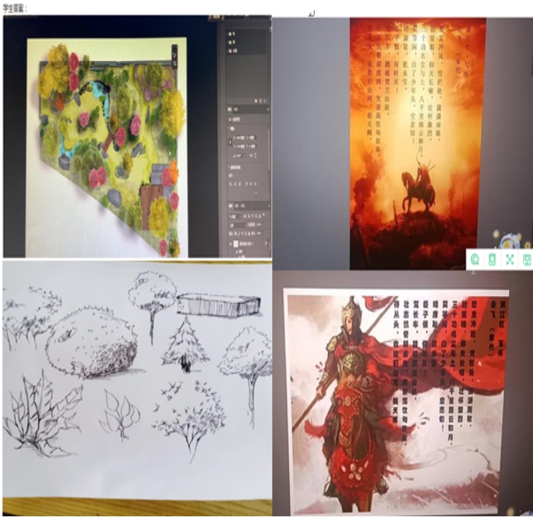 线上线下授课至今以有四周,自我感觉上网课对于电脑课程《Photoshop》教学效果影响不大,对于《别墅景观设计》这种手绘和设计的课程教学效果不如在教室进行。这样的课线上教学想达到线下的效果,教师的教学设备须有能展示的功能,学生的自控力需提高,教师还需要不断学习各种电子设备和各种小软件,以争取更好的授课效果。