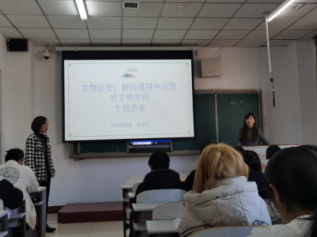 为进一步传承与弘扬中华优秀传统文化,增强大学生文化自信,搭建文博领域学术交流平台,近日,学校邀请河北省博物院张雪竹开展《文物证史:解码战国中山国的文明密码》主题讲座,有关师生代表现场聆听,共同探寻古中山国的历史脉络。