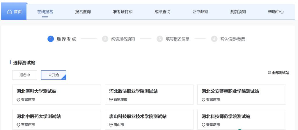 选择河北省石家庄市河北政法职业学院测试站