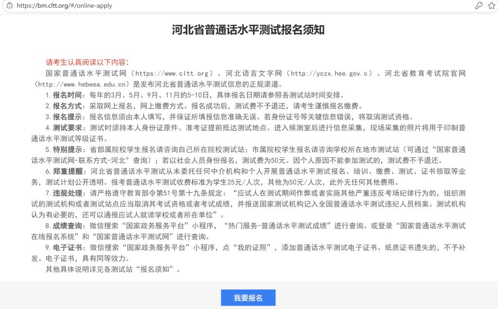 登录网址https://bm.cltt.org/(国家普通话水平测试在线报名系统)在线报名。报名缴费操作流程如下: