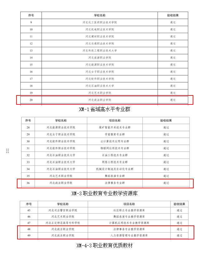 16个项目全部通过验收,是我校推进职业教育创新发展的重要成果,充分彰显了学校在办学实力、专业建设、教学资源、实训能力等方面的综合水平。下一步,我校将以此次验收为契机,系统总结项目建设经验,深化成果应用与推广,持续优化专业布局,完善产教融合育人模式,不断提升人才培养质量和服务区域经济社会发展的能力,为早日建成特色鲜明的河北政法职业大学贡献力量!