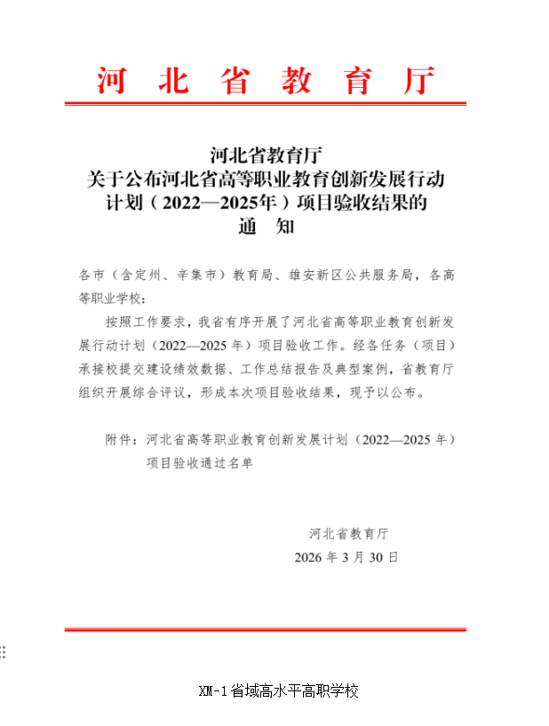 喜报!我校承担河北省高等职业教育创新发展行动计划(2022—2025年)项目全部通过验收